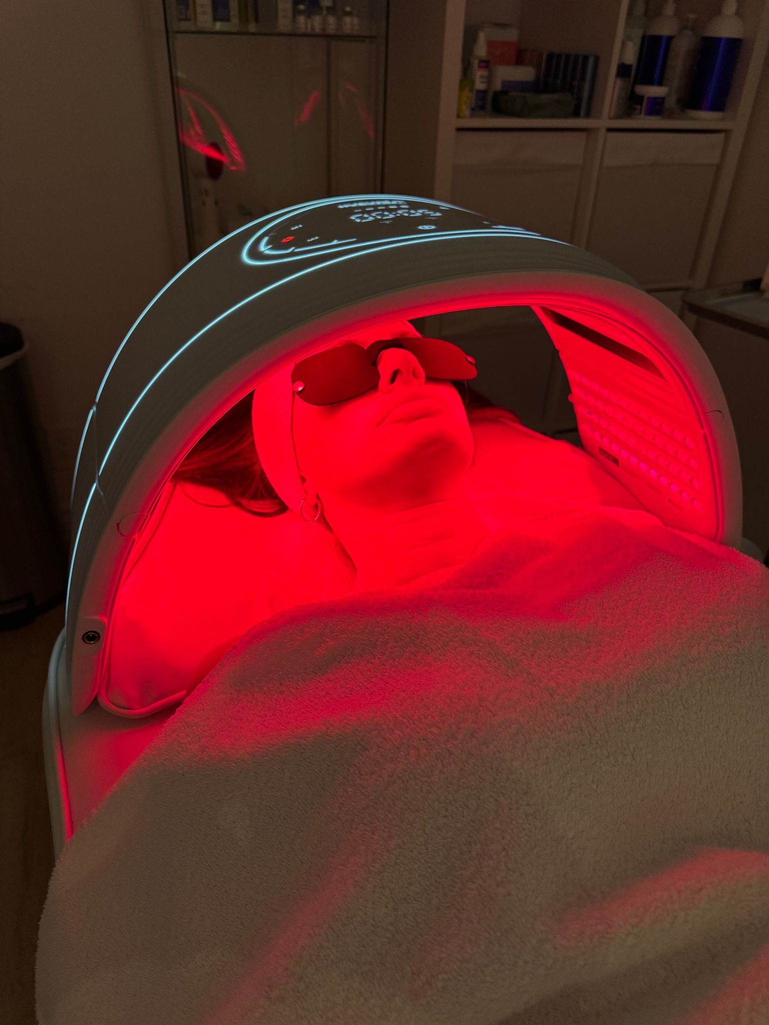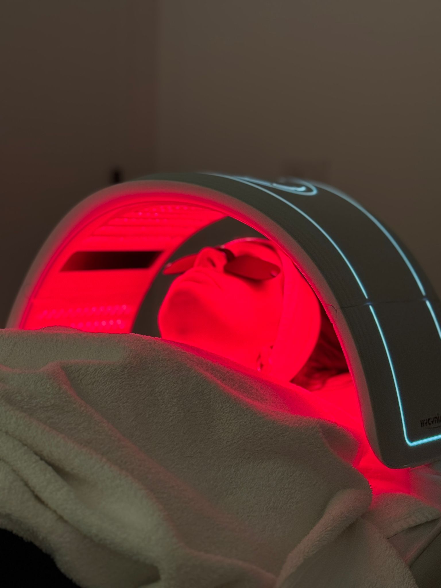 Red Light Therapy is a non-invasive and advanced skincare treatment designed to rejuvenate the skin at a cellular level. Using medical-grade LED wavelengths, this treatment helps repair, calm, brighten, and strengthen the skin with no pain and no downtime. During the session, you simply relax under the LED dome while therapeutic red light boosts collagen production, reduces inflammation, and enhances your natural glow.